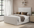 The Olivia 12 Bed Frame is a stunning display of refined craftsmanship and timeless design. Featuring a vertically paneled headboard and footboard, this bed frame exudes a sense of symmetry and balance. The soft, padded upholstery in a cool, neutral shade enhances its sophisticated appeal, making it a perfect addition to modern and contemporary bedrooms. The sturdy construction ensures a lasting structure, while the clean lines contribute to its elegant and polished look.