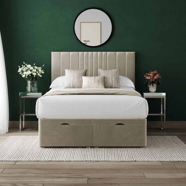 Bring refined luxury and smart practicality into your bedroom with The Mia Ottoman Divan Bed. Featuring a beautifully upholstered vertical-panel headboard, this elegant design creates a calm, high-end look that suits both modern and classic interiors.
