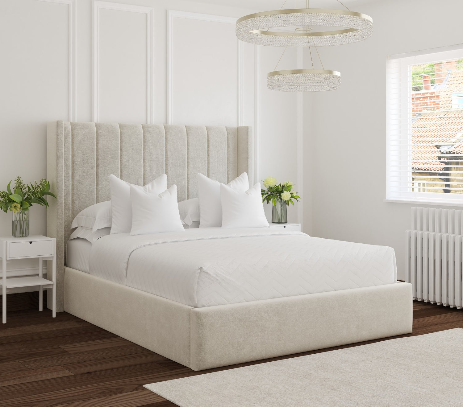The 10 Panel Wingback Bed is a gorgeous fusion of contemporary sophistication and traditional style. This bed, with its attractive wingback design and unique curving headboard, is one of the newest styles available. Featuring opulent vertical panels, the headboard adds a feeling of grandeur and focal point to any bedroom. The bed's carefully applied modern Cream fabric upholstery provides the traditional style a fresh update.