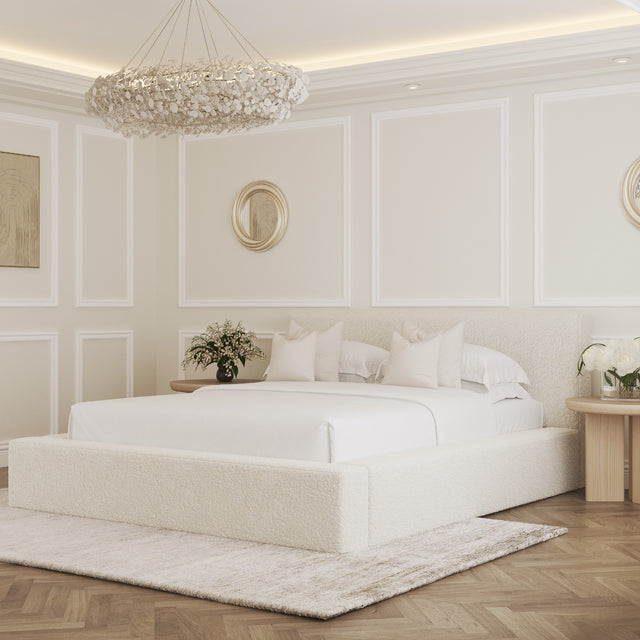 The Sloane Bouclé Bed Frame is the definition of modern minimalism, wrapped in luxurious comfort. Upholstered in soft cream bouclé, it features a wide, low-profile headboard that adds understated elegance to any bedroom. Its clean lines and plush texture make it a perfect fit for contemporary, Scandi, and neutral interiors.