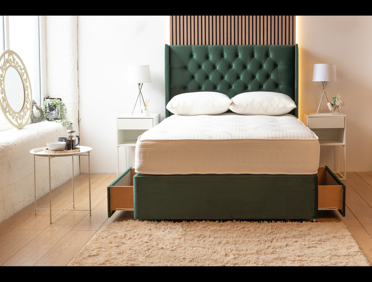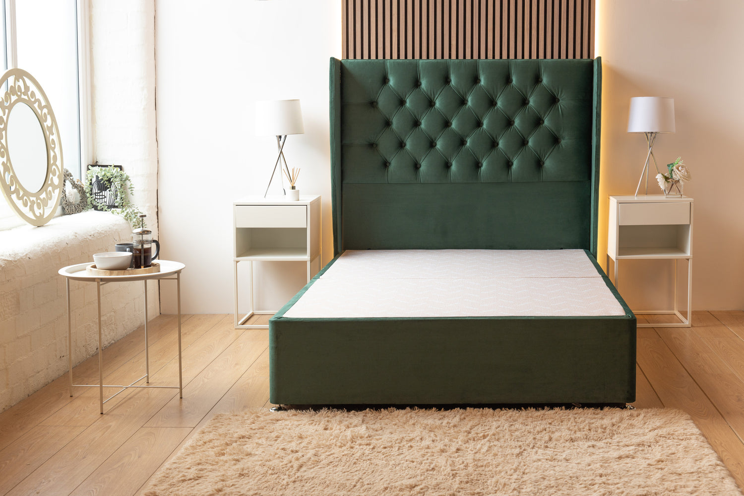 Kensington Divan Bed Set With Mattress Options And Floorstanding Winged Headboard