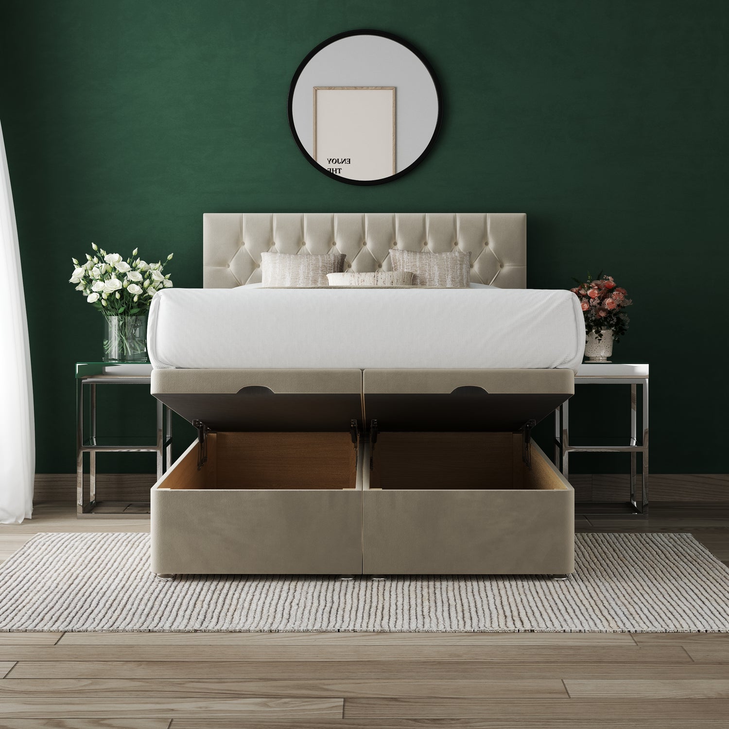 This will make a divine addition to any room with its well-padded headboard and strong divan base platform. The divan base is a necessity for someone in need of a heavy-duty bed to provide a nice sturdy base for their heavy mattress. The added ottoman storage can help your house look less cluttered as you simply can store things beneath your bed leaving your house nice and tidy