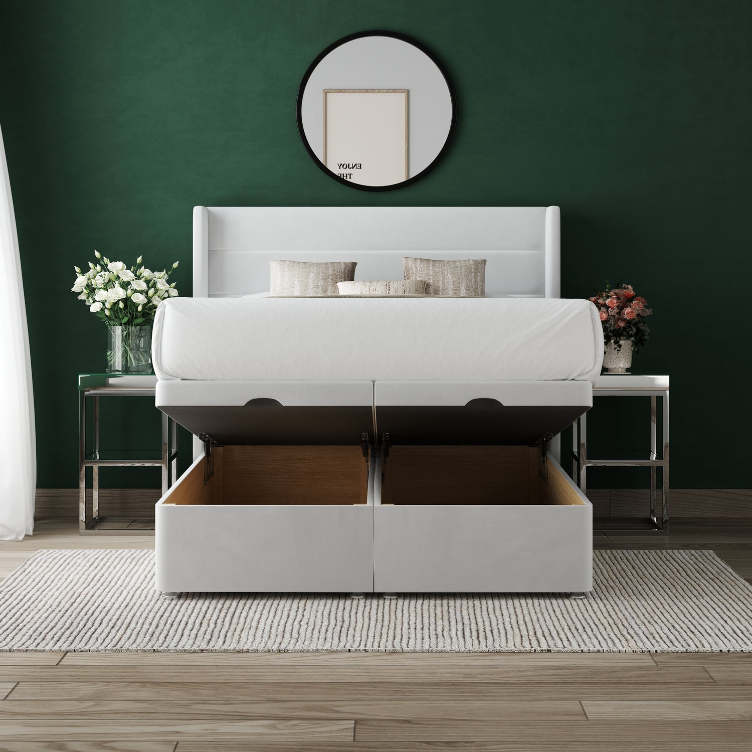 Jasmine Winged Ottoman Divan Bed with 54" Winged Floorstanding Headboard