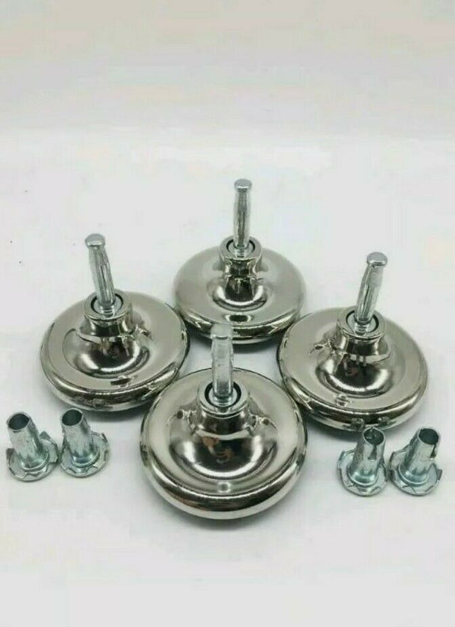 4x Chrome Glider Feet For A Divan Bed With Inserts